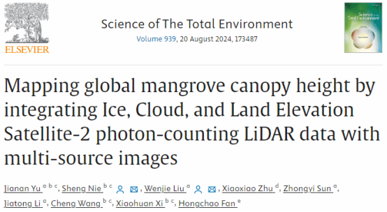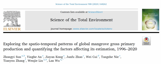 公司“全球变化与南海生态安全”团队与海南省生态环境监测中心、西北农林科技大学、国家林业和草原局、中国科学院空天信息创新研究院等单位合作,在全球尺度红树林生态系统的总初级生产力和冠层树高研究方面取得了一定的研究进展,发表2篇学术论文。论文第一作者分别为孙仲益副教授,于佳男博士研究生,通讯作者为乌兰副教授,聂胜副研究员和刘文杰教授。