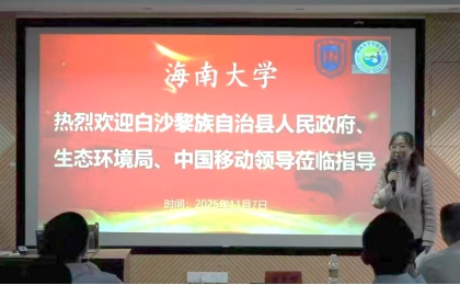 2025年11月7日,白沙黎族自治县人民政府梁定雄副县长、县生态环境局张耸勇局长、中国移动海南公司白沙分公司陈筱磊总经理等一行莅临tyc234cc太阳成集团调研交流。tyc234cc太阳成集团人事处马新东副处长、tyc234cc太阳成集团生态系主任张莉娜老师、tyc234cc太阳成集团王团团老师以及南海海洋资源利用国家重点实验室王赛老师等师生代表参加座谈会。会议由张莉娜老师主持。