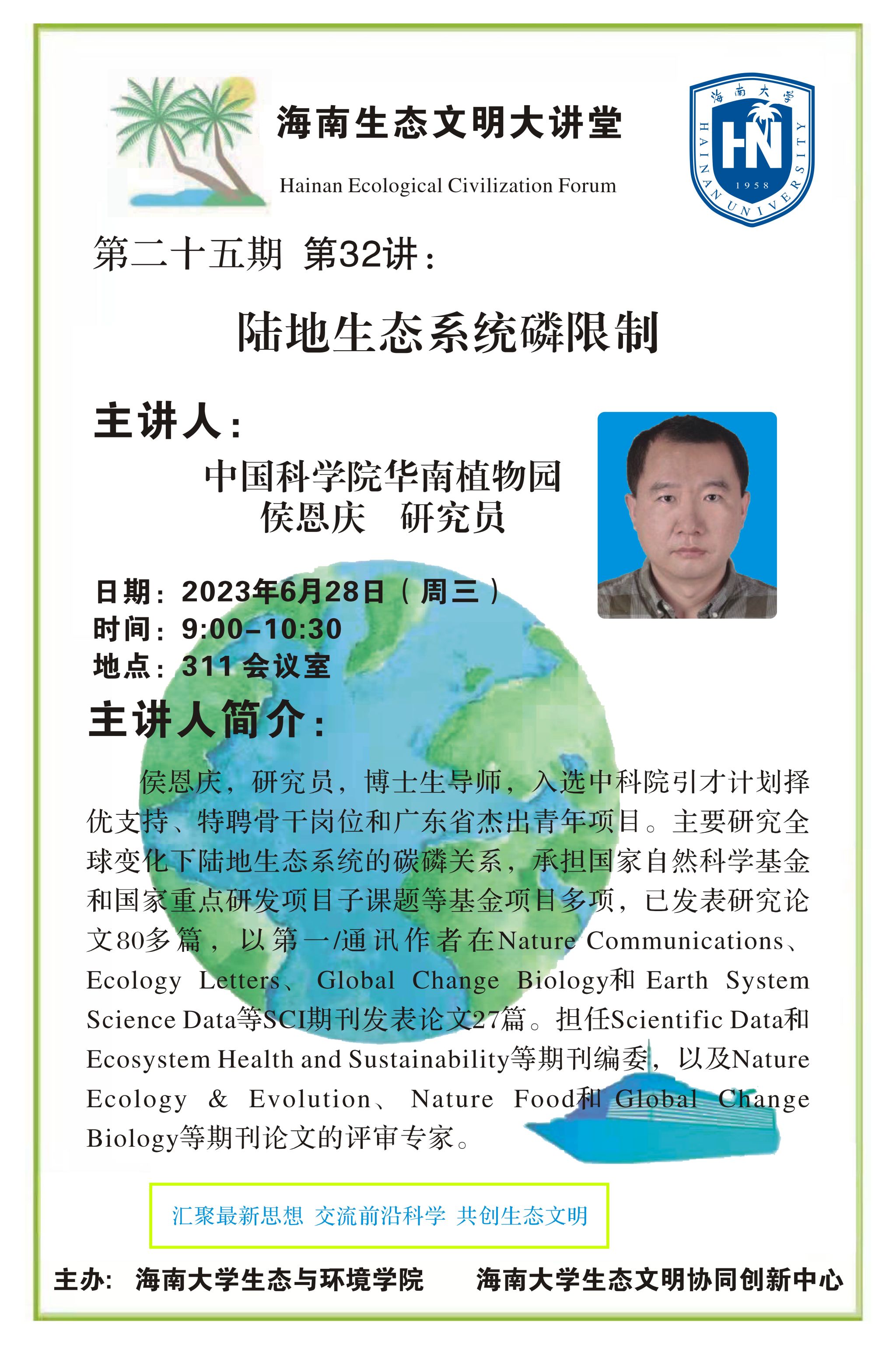 第32讲 侯恩庆研究员做客海南生态文明大讲堂