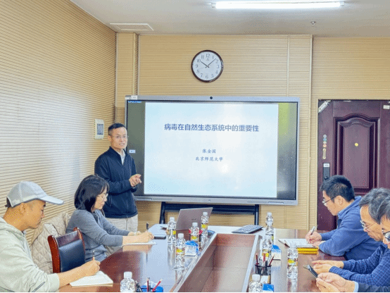 2025年4月3日上午,海南生态文明大讲堂第五十五期第65讲《病毒在自然生态系统的重要性》在农科楼203会议室举行,北京师范大学张全国教授主讲。tyc234cc太阳成集团刘文杰副经理、赵洪伟副经理、张知彬教授、周淑荣教授、任明迅教授以及10余位青年老师和研究生现场参加了报告会。