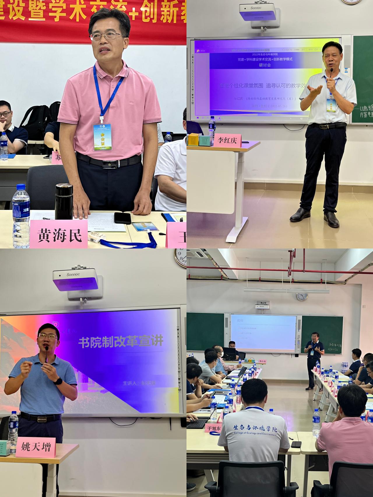 26日下午,在书院制及2+2模式下培养方案设计及教学管理研讨会上,丹心书院姚天增副书记(主持工作)介绍了书院成立及目前发展情况。任明迅副经理汇报了生态学本科专业基本情况及发展规划。